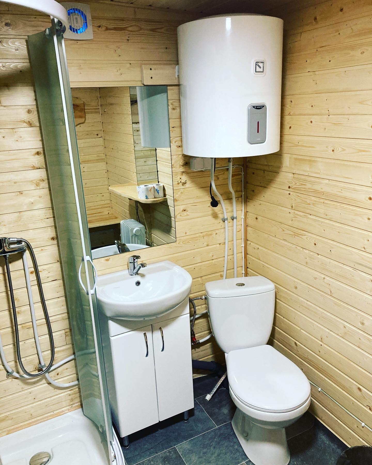 - WC kambarį su kriaukle, dušu