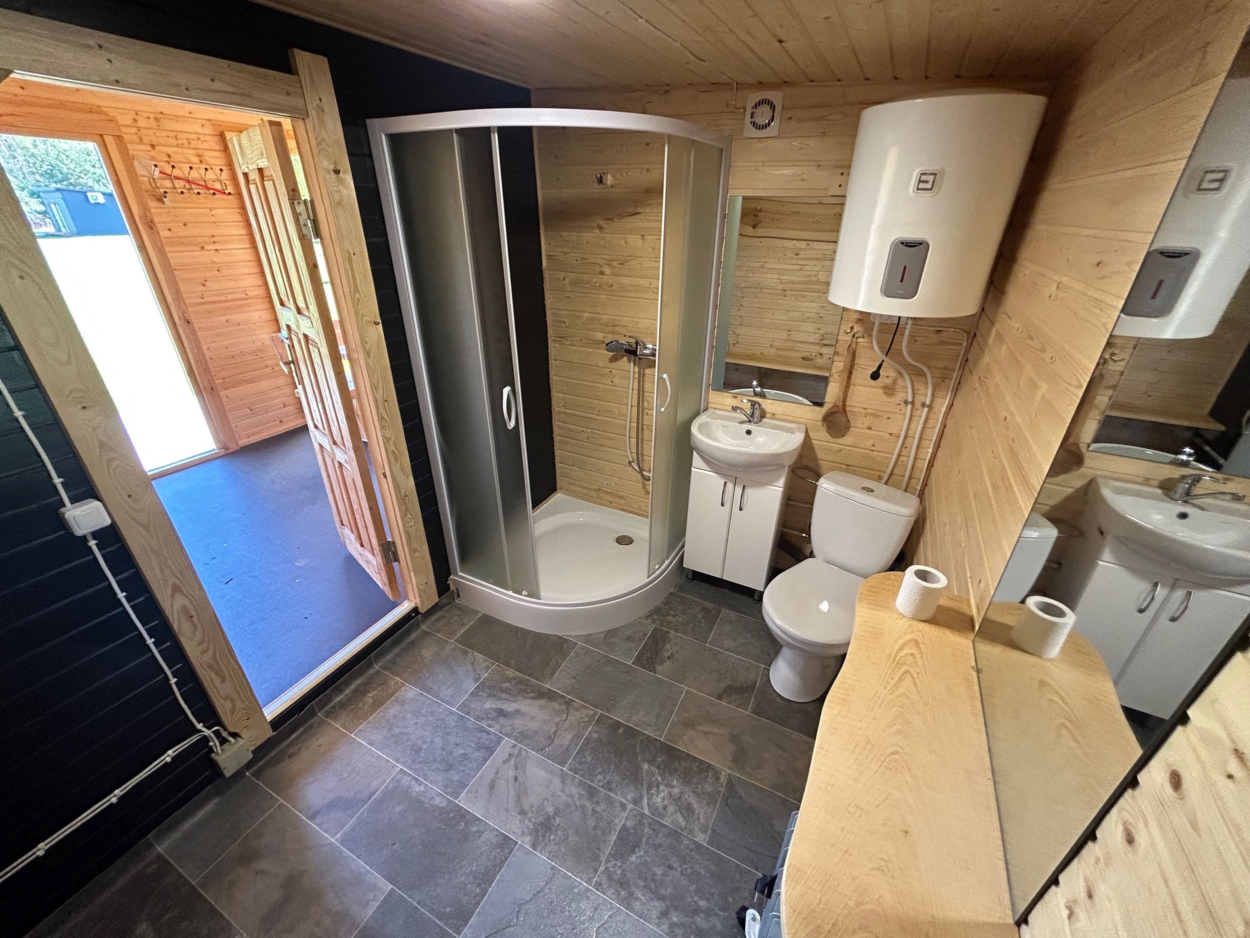 Kempinge rasite visus reikalingus patogumus – elektra, šašlykinės, laužavietė, patogus wc su kriaukle, dušas su karšto vandens boileriu.